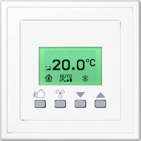 | Bedienfunktionen | Sollwertverstellung Temperatur, Lüfterstufenverstellung, Präsenzmeldung |