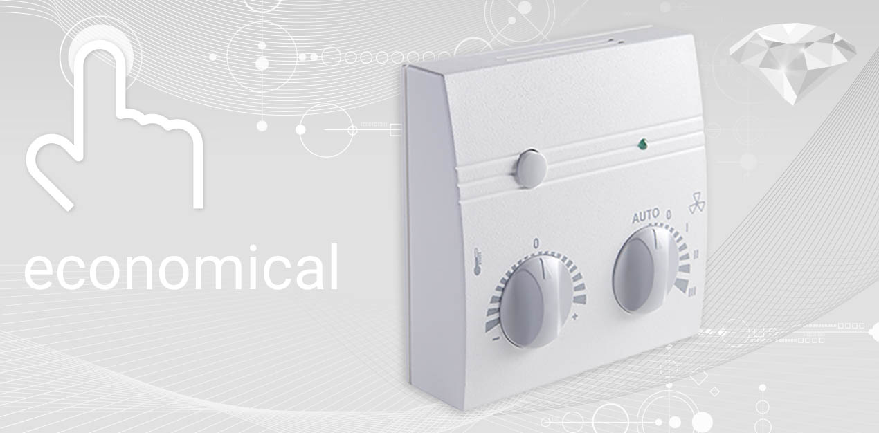 setpoint adjustment temperature, fan stage adjustment, max. 5 stages, presence detection, status feedback via LED |