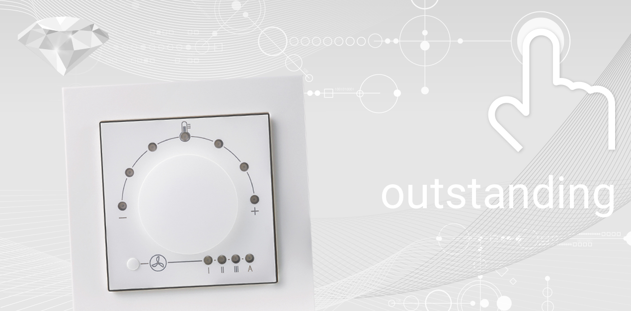 setpoint adjustment temperature, fan stage adjustment, standby/presence detection, ECO function, status feedback via LED |