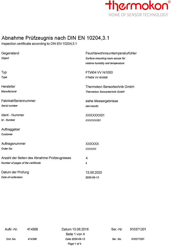 Inspection certificate 3.1 (EN 10204) pressure – 2 values