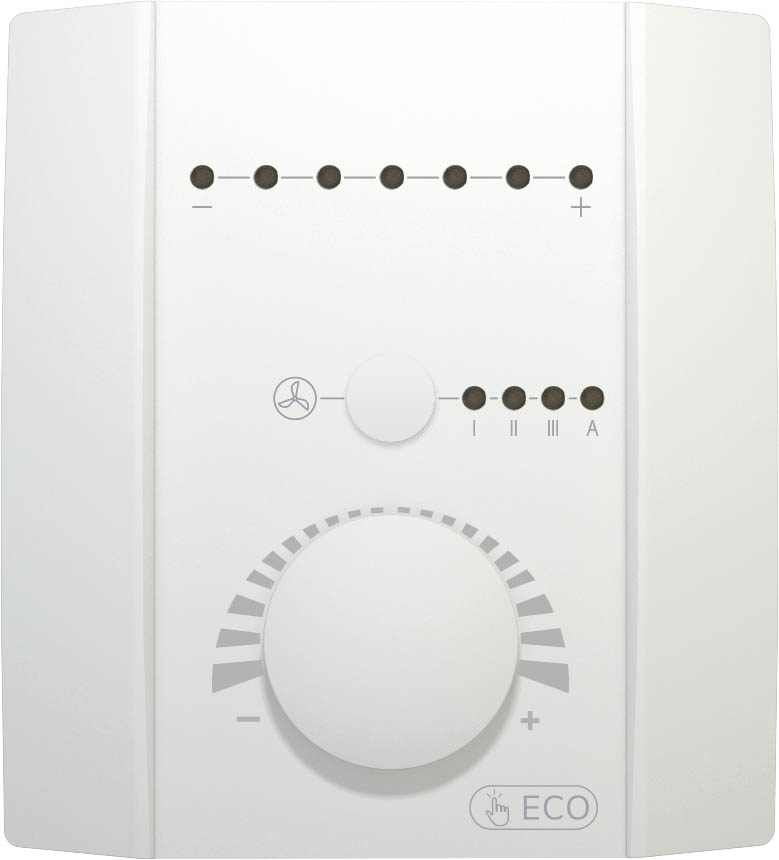 | Elementos operativos | encóder/botón pulsador para ajuste de consigna/función ECO, botón para el ajuste de la etapa del ventilador hasta 5 etapas |