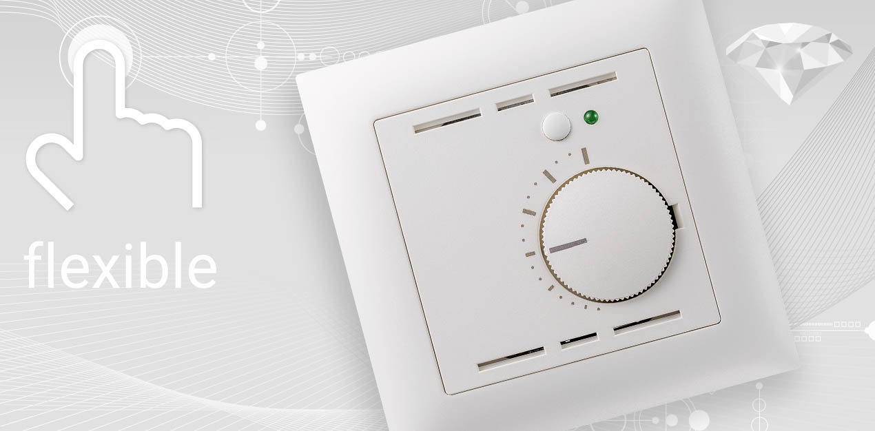 Un'unità di controllo da incasso visivamente attraente nel design di vari produttori di interruttori. Disponibile in diversi colori e varie varianti di etichettatura. Possibili elementi di comando sono il potenziometro, i LED, i tasti e il commutatore. Un sensore di temperatura può essere aggiunto su richiesta. La morsettiera rimovibile consente il precablaggio.