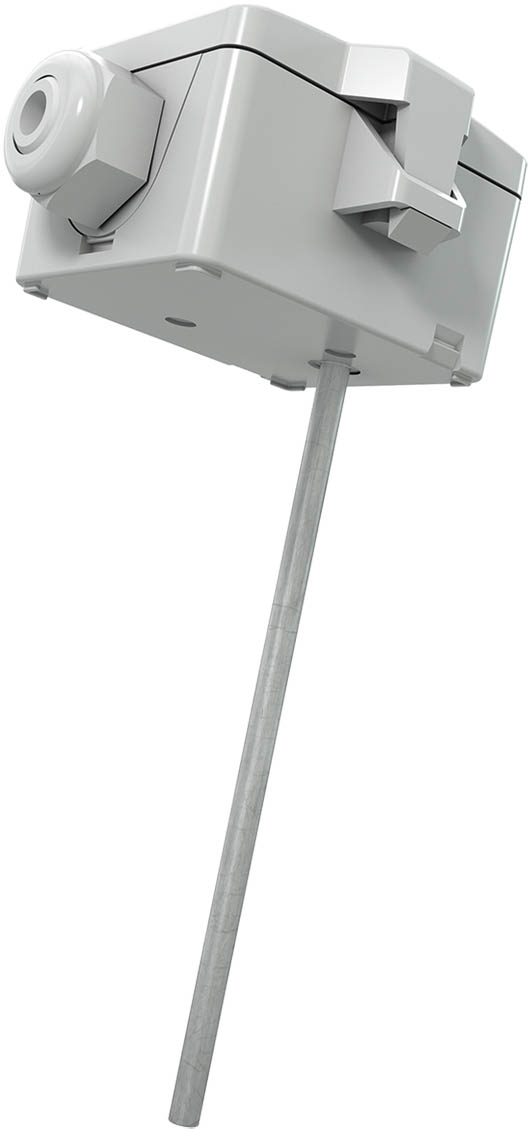 | Montaggio | quando viene utilizzato come sensor da canale, utilizzare una flangia di montaggio flessibile MF6DS (+90..+120 °C) o MF6 (ottone, +120..+260 °C), o con custodia USE-S con clip di montaggio, per l'utilizzo come i sensor ad immersione utilizzare uno pozzetto termometrico THVADS / THMSDS |