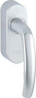 Maniglia per finestra senza fili EnOcean senza batteria (opzionale con serratura) per la registrazione dello stato della finestra. Quando viene azionata, la maniglia invia un segnale radio con la posizione della maniglia ad un attuatore o ad un'unità di controllo centrale, ad esempio per attivare un blocco di energia. In questo modo è possibile ottimizzare il consumo energetico dell'edificio, poiché il riscaldamento o la ventilazione vengono disattivati quando le finestre sono aperte. Con mandrino quadrato a lunghezza variabile per profondità del profilo di 32..42 mm per i comuni spessori del telaio della finestra.
