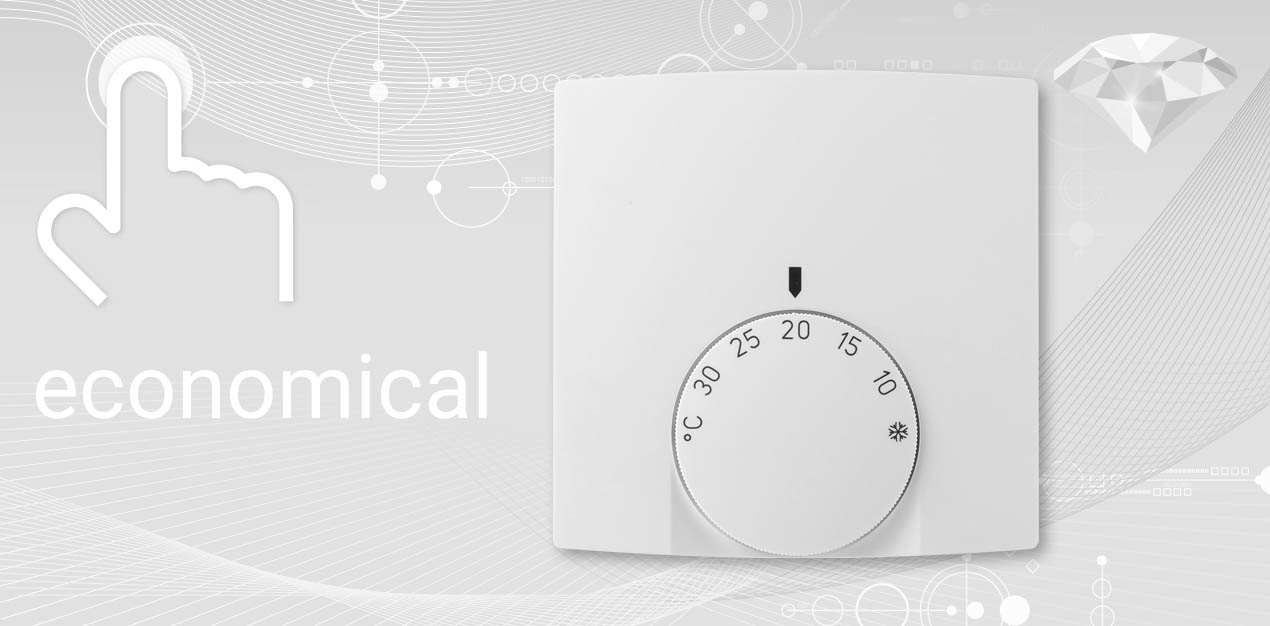 Natynkowy, bimetaliczny regulator pomieszczeniowy LCA z funkcją dzień/noc (funkcja ECO) przeznaczony jest do ogrzewania lub chłodzenia za pomocą systemu 2-rurowego w pomieszczeniach mieszkalnych, przemysłowych i komercyjnych. Rządaną temperaturę ustawia się za pomocą dużego pokrętła. Nadaje się do promienników podczerwieni i innych systemów grzewczych sterowanych termostatem.