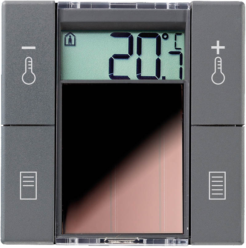 | Funkcje operacyjne | modyfikowanie nastawy, w krokach od ±1 do ±10 °C, opcjonalnie konfigurowalne, podnoszenie/opuszczanie rolet |