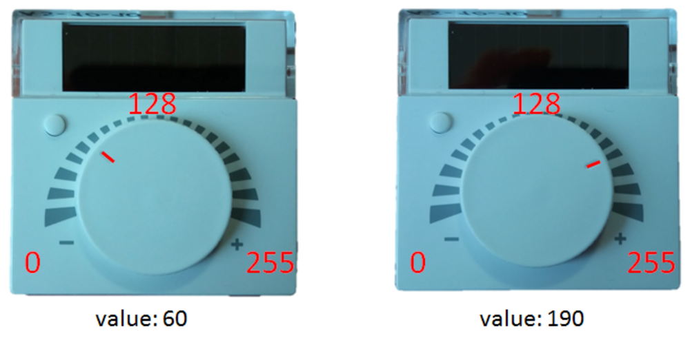 Il est transmis comme un décalage relatif de 0 à 255 (valeur sur 1 octet). Cette valeur montre, par exemple, la position angulaire du potentiomètre rotatif :