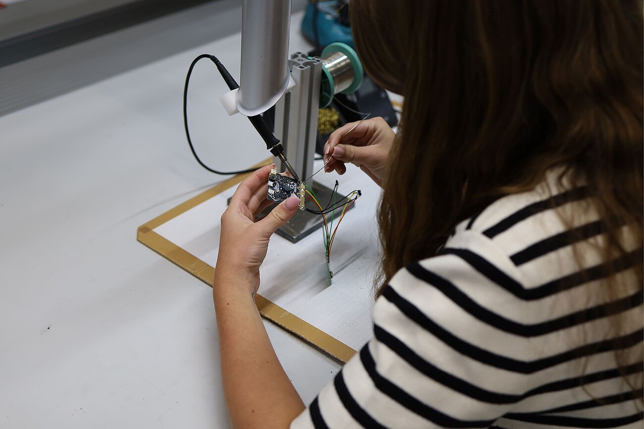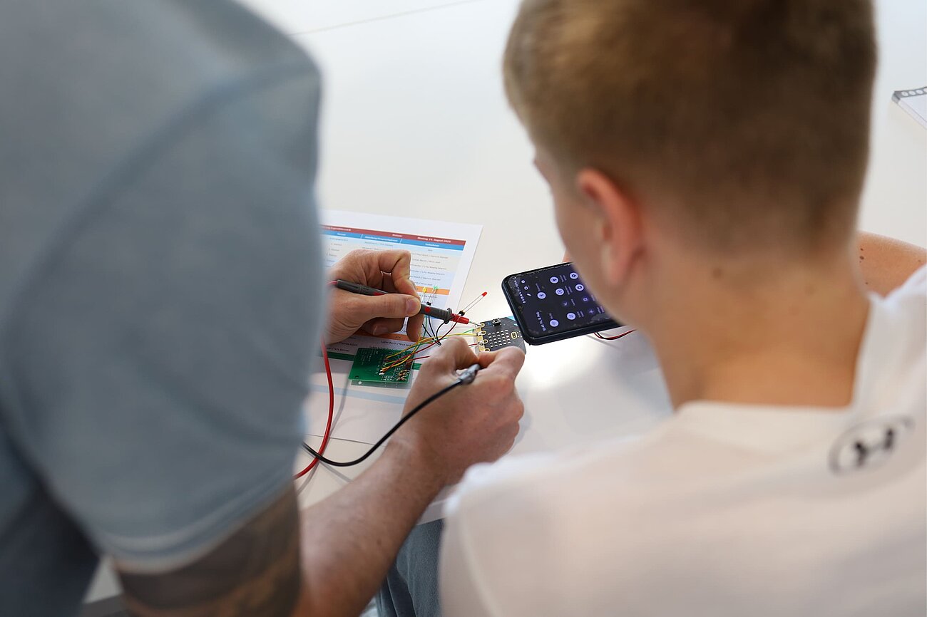 Auch wenn nicht jede Lötstelle sofort perfekt saß, halfen sich die Azubis untereinander. Unsere Profis prüften die Ergebnisse und gaben Tipps, wenn etwas nicht ganz funktionierte. So konnten selbst diejenigen, die später eher im Büro arbeiten werden, schon nach kurzer Zeit bei Begriffen wie „Lötbrücke“, „Anode“ oder „Kathode“ mitreden.