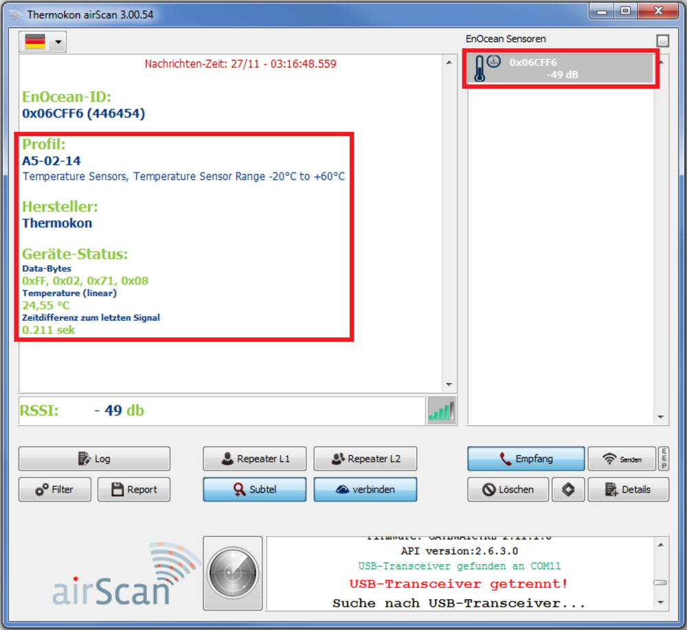 Zum Messen der Singnalstärke bietet Thermokon das Softwaretool airScan an.