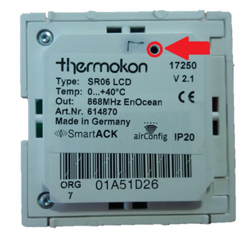 Die oberen beiden Tasten haben die gleiche Funktion, wie die des SR06 LCD 2T. Sie senden unter ID 1 das EEP A5-10-03 für die Temperaturregelung. Diese ID steht auf der Rückseite des Geräts.