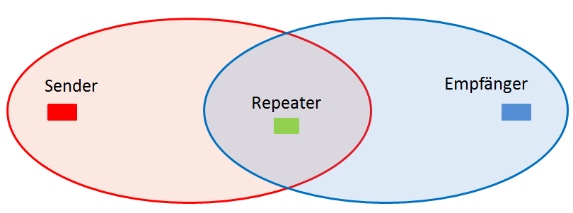 Repeater sollten in etwa mittig zwischen Sender und Empfänger platziert werden: