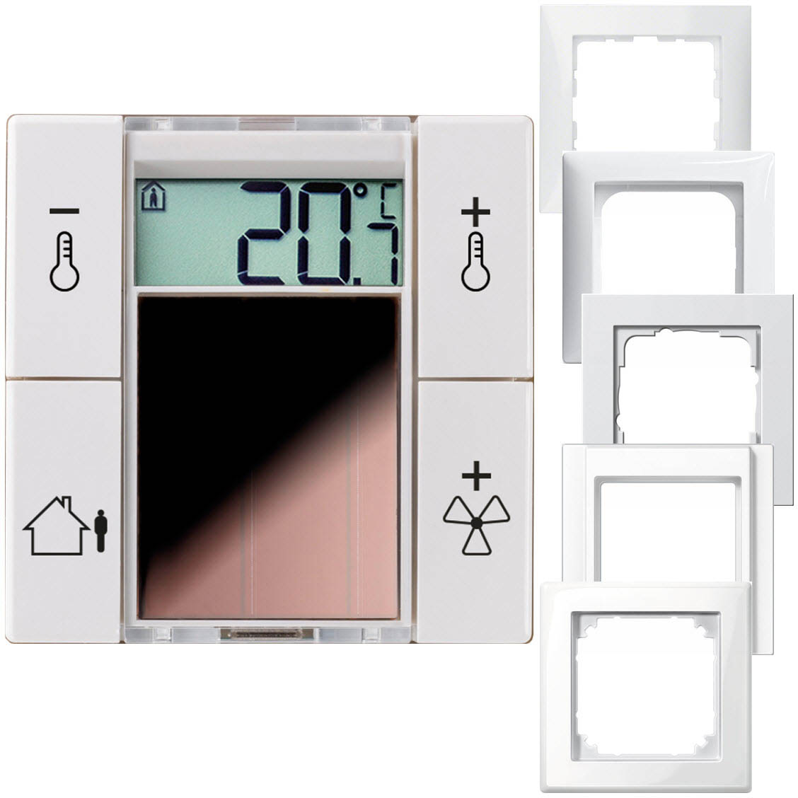 | Fonctions de commande | réglage de consigne, par pas de ±1 à ±10 °C, configurable en option, réglage de l'étapes de ventilateur, détection de présence |