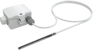 Czujnik kablowy do pomiaru temperatury w aplikacjach HVAC. W zależności od zastosowania dostępne są przewody z PVC, silikonu i PTFE. Beznarzędziowe otwieranie, zamykanie i podłączanie przewodów oraz wyjmowane przepusty kablowe zapewniają szybką i łatwą instalację.